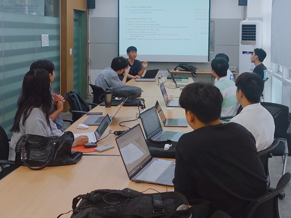 저희는 단순히 진도를 나가는데 목적을 두는 것이 아니라 해당 주제에 대해 서로 공부해 온 것을 기반으로 이야기 하면서 스터디를 진행하고 있습니다. 모르는 부분은 질문하고, 자기가 알던 내용과 다르면 얼마든지 의견을 제시해도 좋습니다. 같이 더 좋은 것을 얻어가기 위해 함께 노력하고 있습니다.