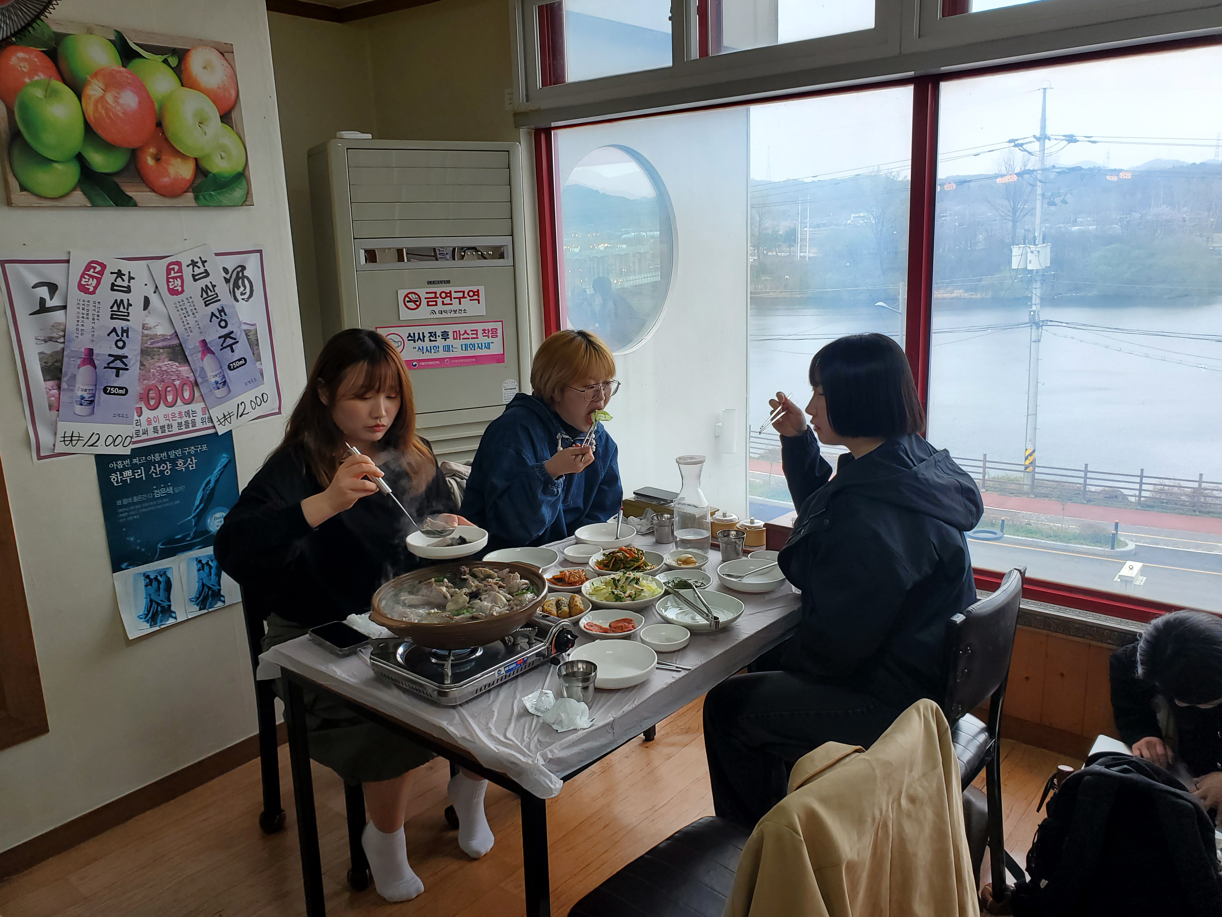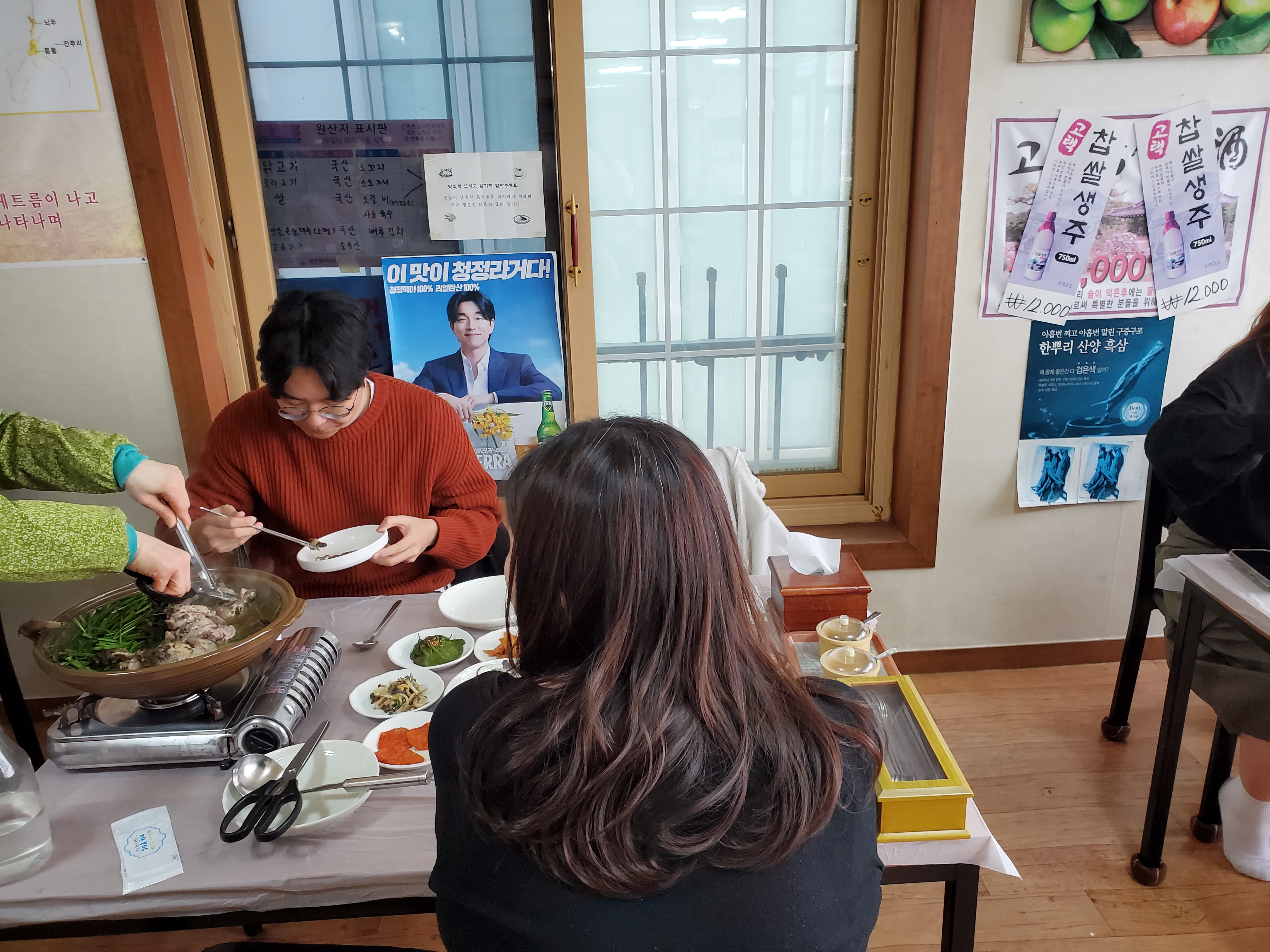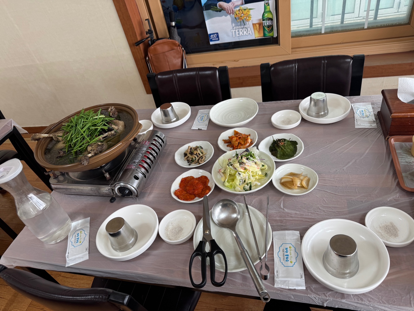 청남대 관람을 마친 후, 대청댐 인근의 '역발산’이라는 식당으로 이동해 능이오리백숙으로 늦은 점심을 먹었어요. 오랜 산책 끝에 출출했던 배를 따뜻하고 진한 국물이 제대로 채워줬고, 정갈하게 차려진 반찬들과 함께 정말 푸짐하게 먹었습니다. 맨 마지막에 나온 죽은 신의 한수였어요! 이야기꽃은 식사 시간에도 계속 이어졌고, 자연스럽게 운영진 각자 개인의 삶과 커뮤니티에 대한 고민도 나누는 의미 있는 시간이었어요.