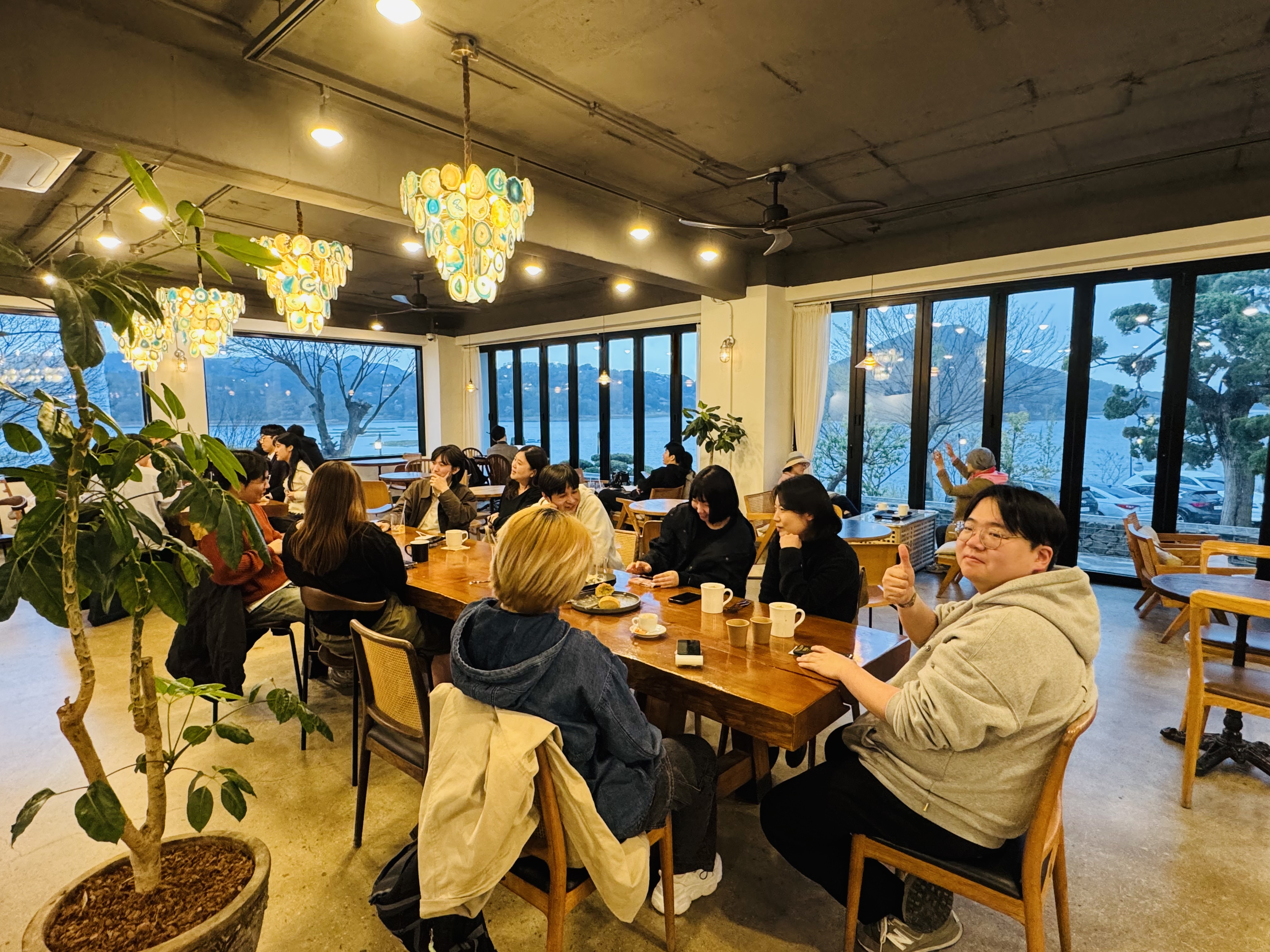 식사 후엔 대청호가 내려다보이는 ‘더 대청’ 카페에서 티타임을 가졌습니다. 넓은 창 너머로 내리는 비를 바라보며, 커피와 차를 나누고 각자의 생각과 고민을 공유하는 시간. 자연스럽게 대화는 운영 방향에 대한 아이디어와 향후 계획으로 이어졌습니다. 휴식과 회의가 잘 어우러진, 진정한 ‘워크숍’다운 순간이었죠.
