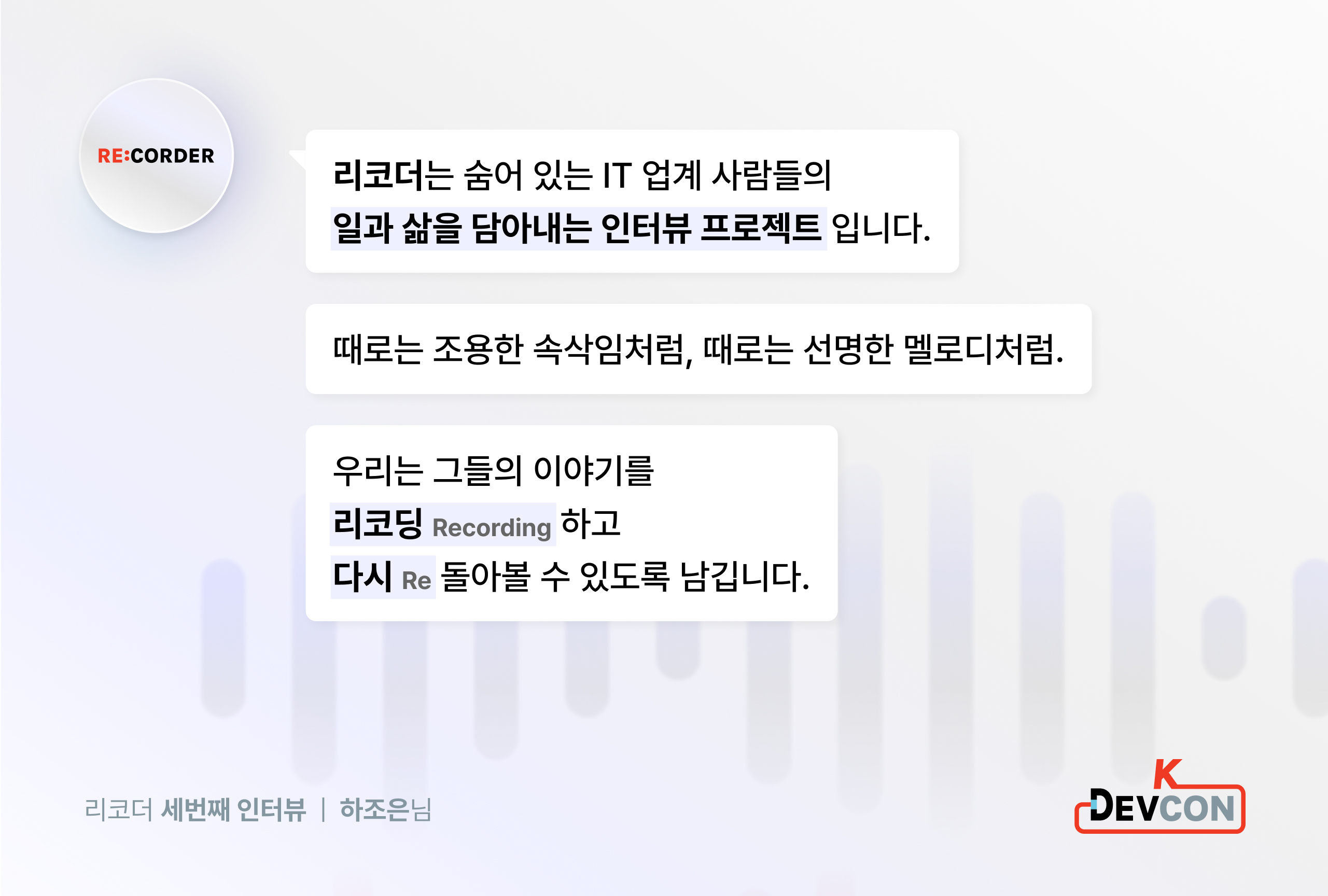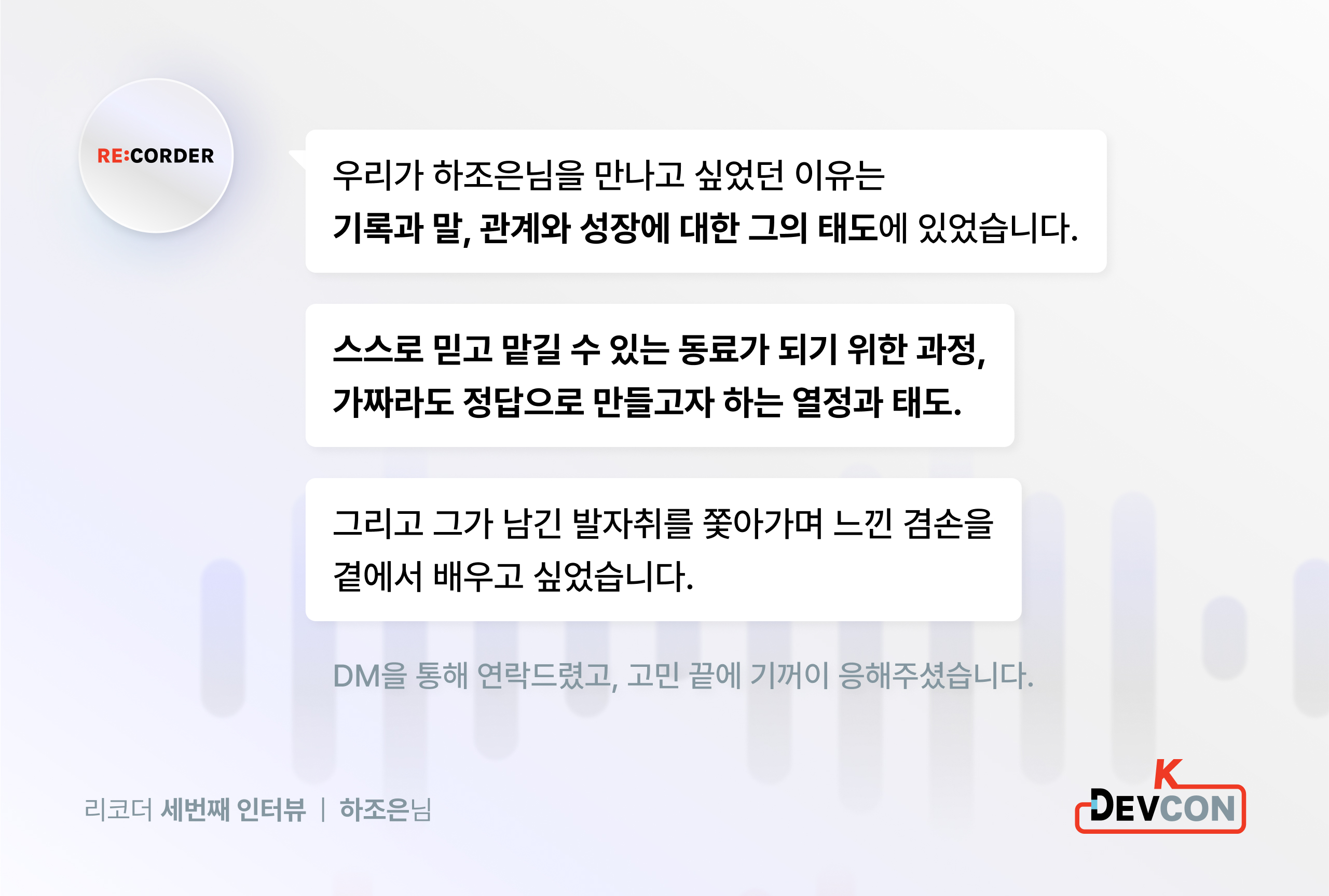 하조은님은 기술적인 경력을 나열하는 대신 자신의 경험과 고민을 진솔하게 공유해왔습니다.