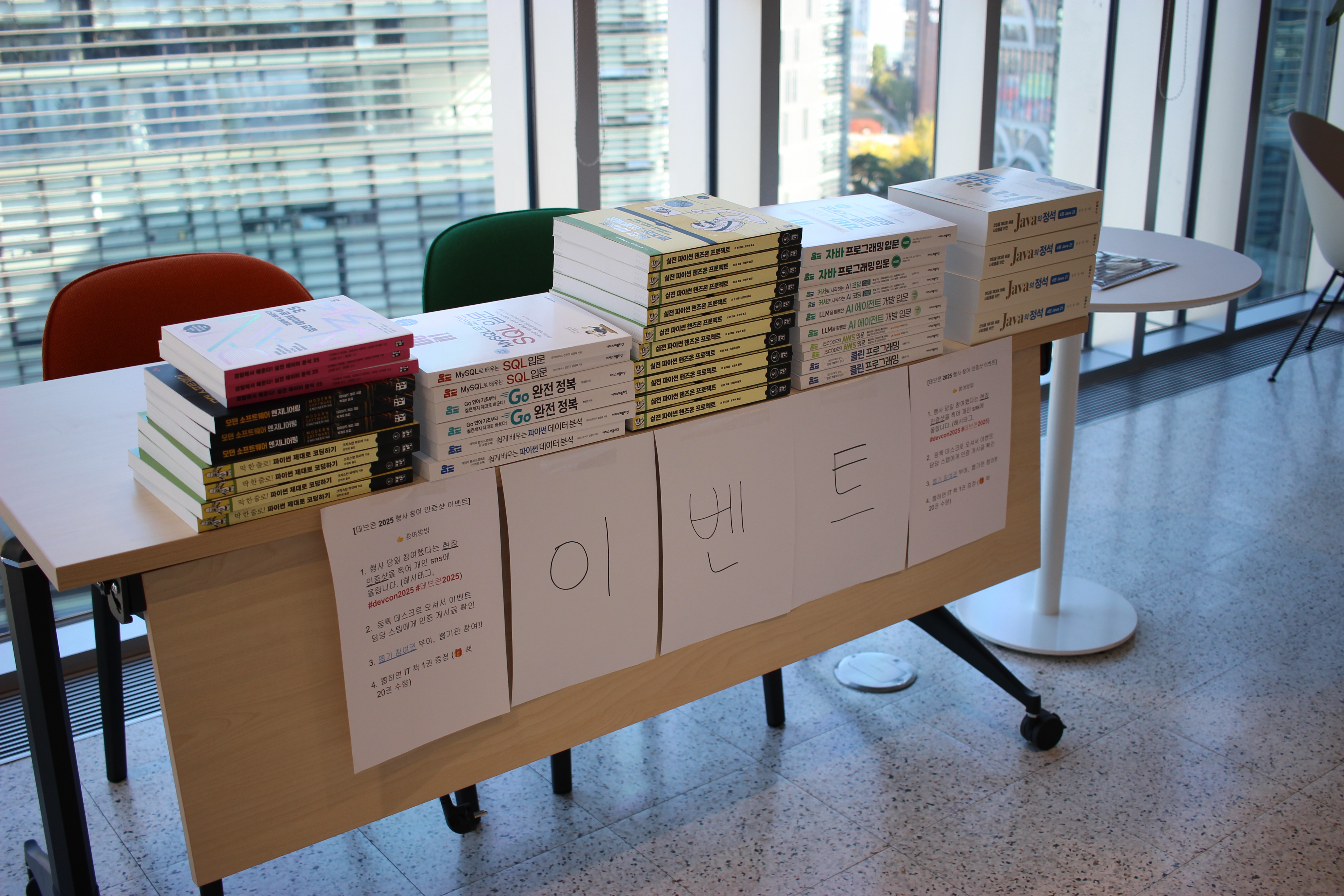 컨퍼런스 사진을 SNS에 업로드하여 #DEVCON 2025 해시 태그와 함께 포스팅 해주시면 뽑기 이벤트에 참여할 수 있었습니다. (두근두근) 당첨자에게는 이지퍼블리싱의 DO it! 시리즈와 책만에서 후원해주신 책을 증정했습니다. 아쉽게도 꽝을 받으신 분들이 많았지만, 쉬는 시간마다 찾아와서 도전하며 분위기를 한층 더 즐겁게 만들었습니다.