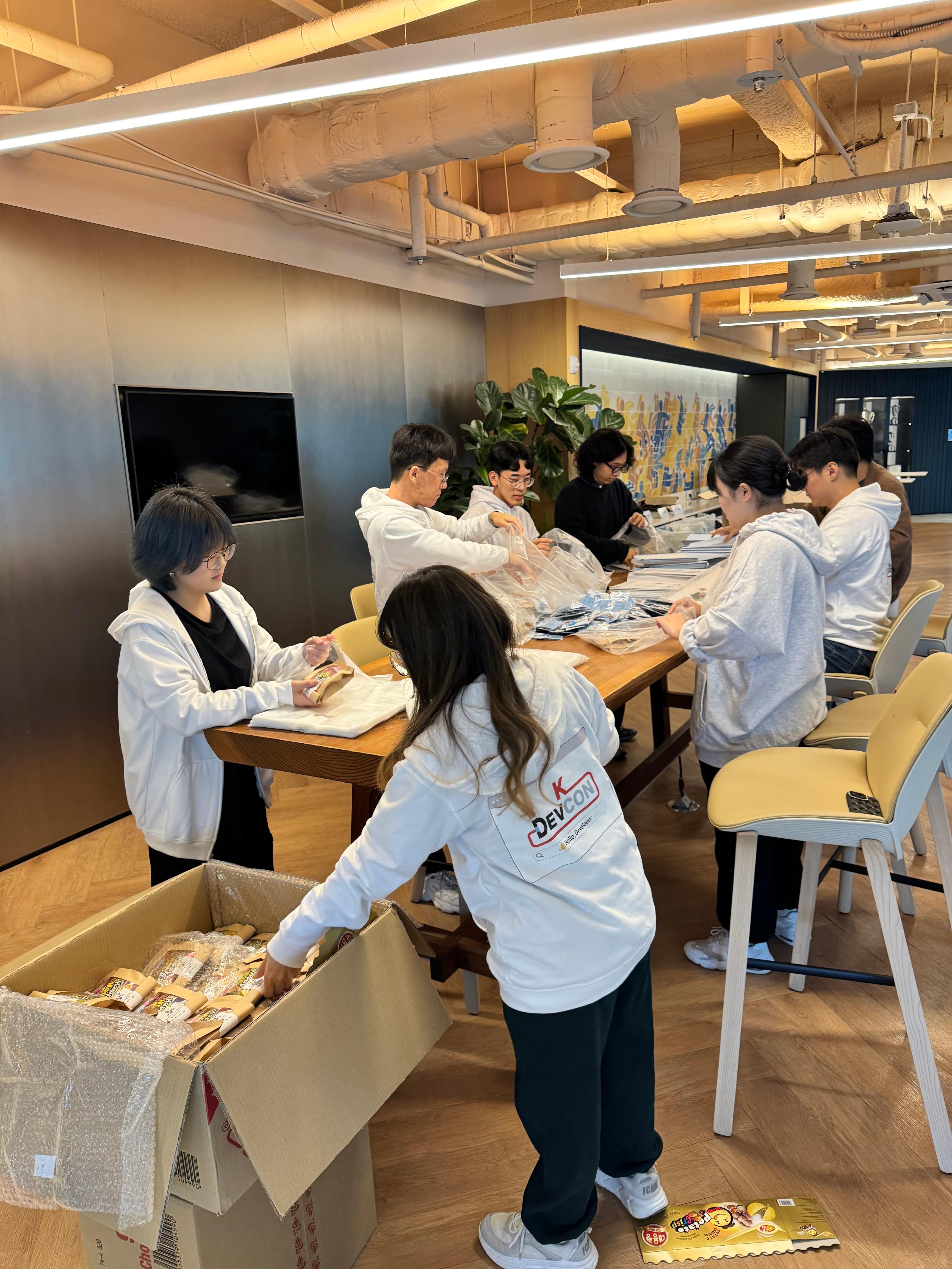 오거나이저와 커뮤니티에 뜻을 함께하는 자원봉사자가 함께 모여 행사 준비를 시작했습니다. 참가자 분들에게 드릴 간식부터 연사자님께 드릴 소정의 기념품까지, 컨퍼런스 장소에 K-DEVCON의 손길을 느끼실 수 있도록 준비했습니다.