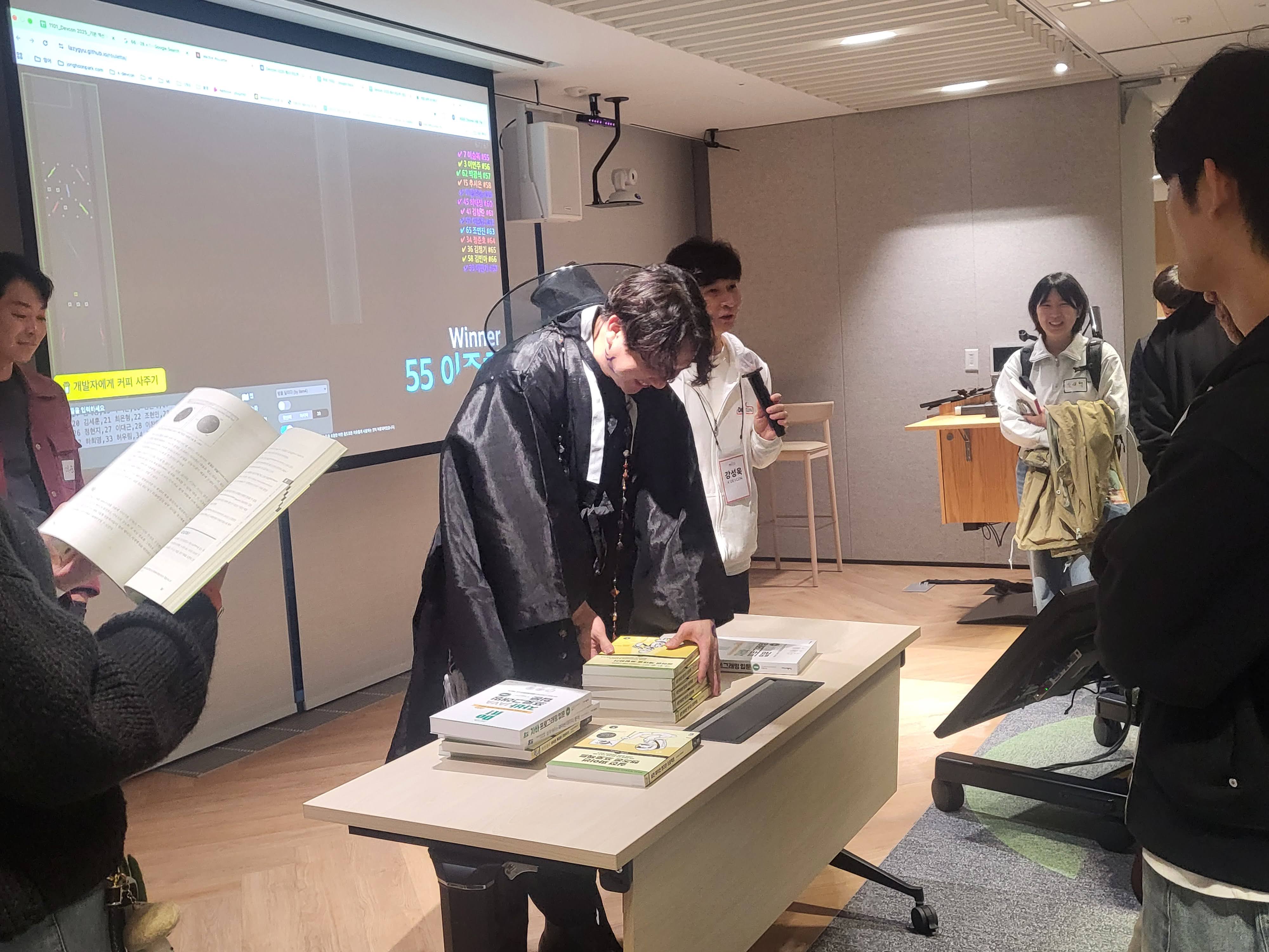 ✨ 이번 K-DEVCON Hunters 주제에 맞춰 멋진 ‘케데헌 사자보이즈’ 코스튬으로 참석해주신 모두의연구소 박광석님도 이벤트에 당첨되어 책을 받아가셨습니다🎁 덕분에 현장이 더욱 빛났습니다. 다음 DEVCON에도 함께 해주세요!!!