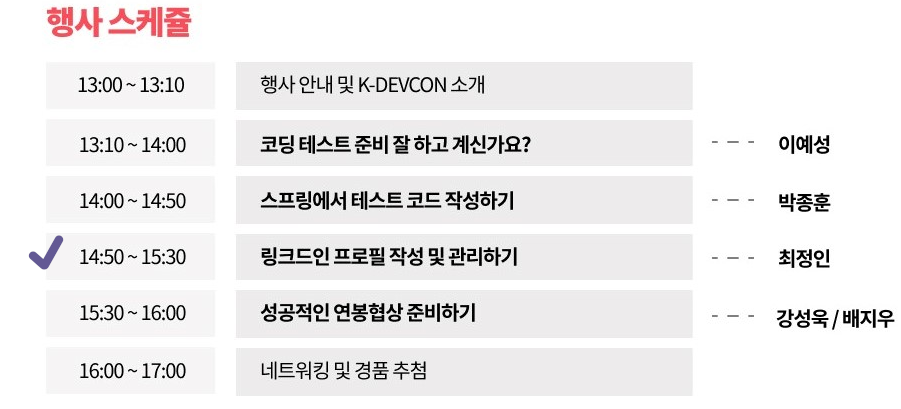 행사 스케줄은 다음과 같습니다 :)