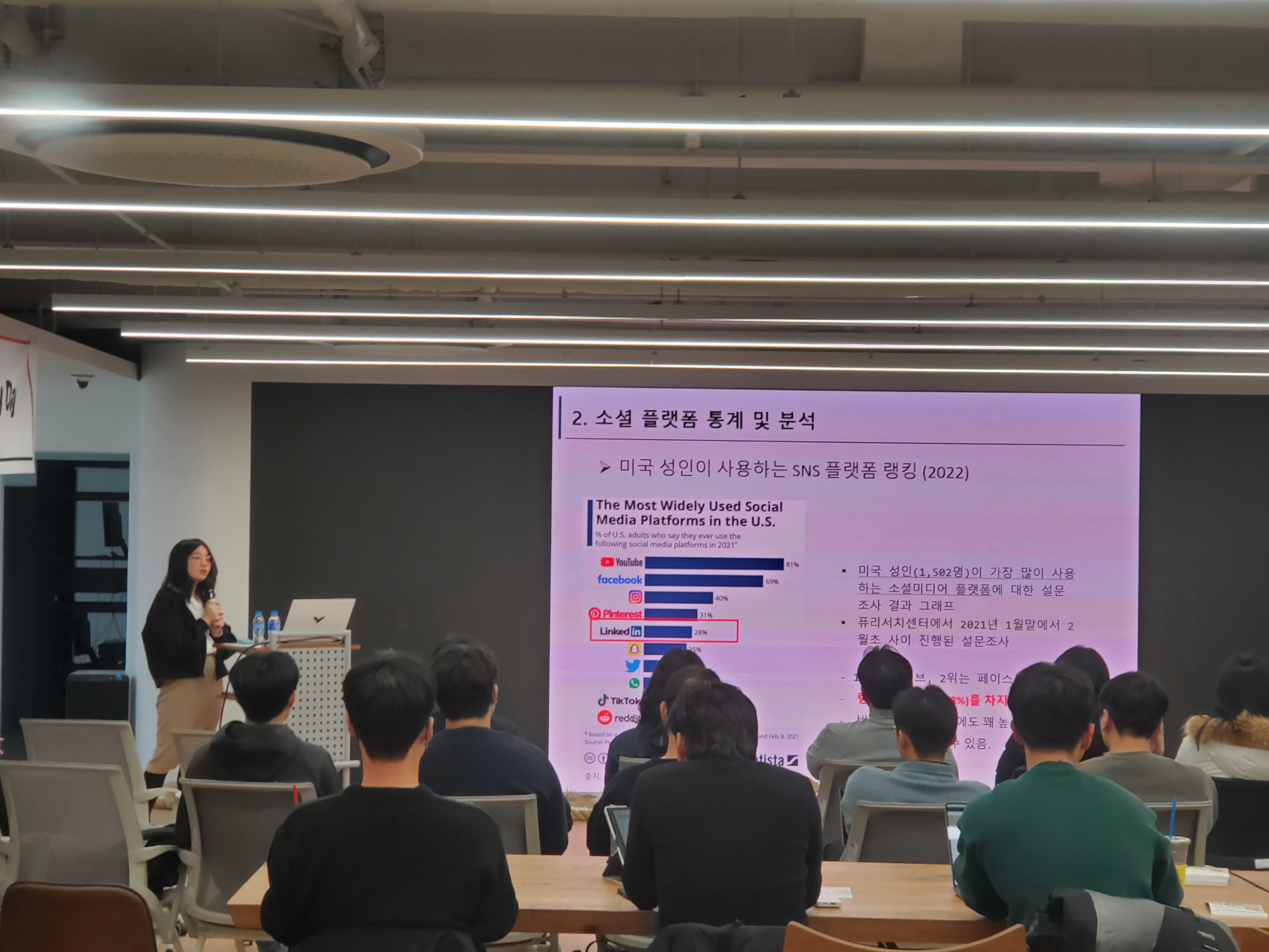 또한 링크드인은 비지니스 플랫폼임에도 미국 성인이 사용하는 SNS 플랫폼 랭킹 5위를 차지했고, B2B 마켓팅을 위해 사용되는 소셜 플랫폼 리스트중에는 가장 높은 점유율을 보였습니다.( 2022년 기준)