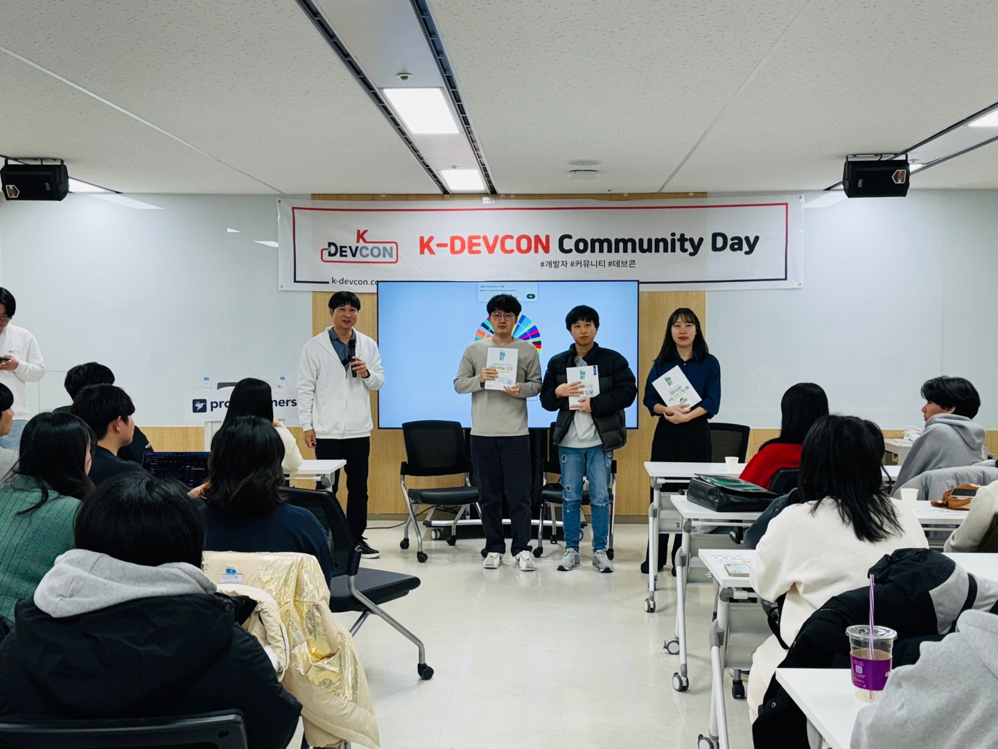 2024년 1월 2일(화) K-DEVCON 서울 챕터를 오픈했습니다! 앞으로 K-DEVCON 서울 챕터가 마련한 오픈챗과 각종 활동은 전공자/비전공자, 재직자, 취준생, 학생 관계없이 자유롭게 참여 가능하며, 최신 IT 인프라가 오가는 서울에서 다양한 활동으로 많은 IT 관계자분들과 소통할 수 있기를 희망합니다. 오픈챗 입장하기 : https://open.kakao.com/o/gzxWyAZf