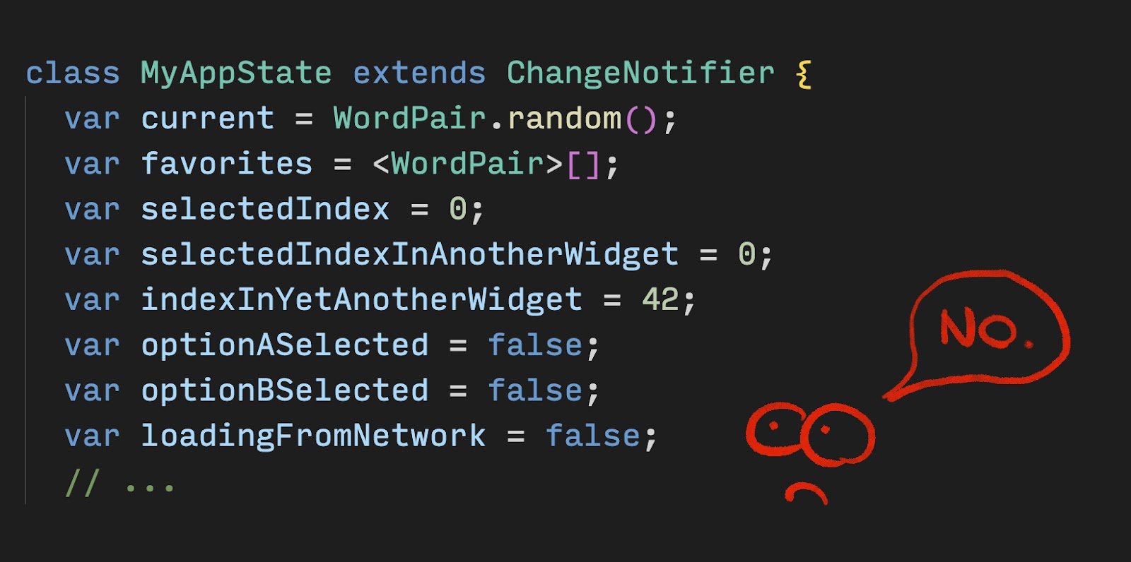 WordPair current = WordPair.random(); //MyAppState가 가진 변수들는 상태 관리를 받게 됩니다