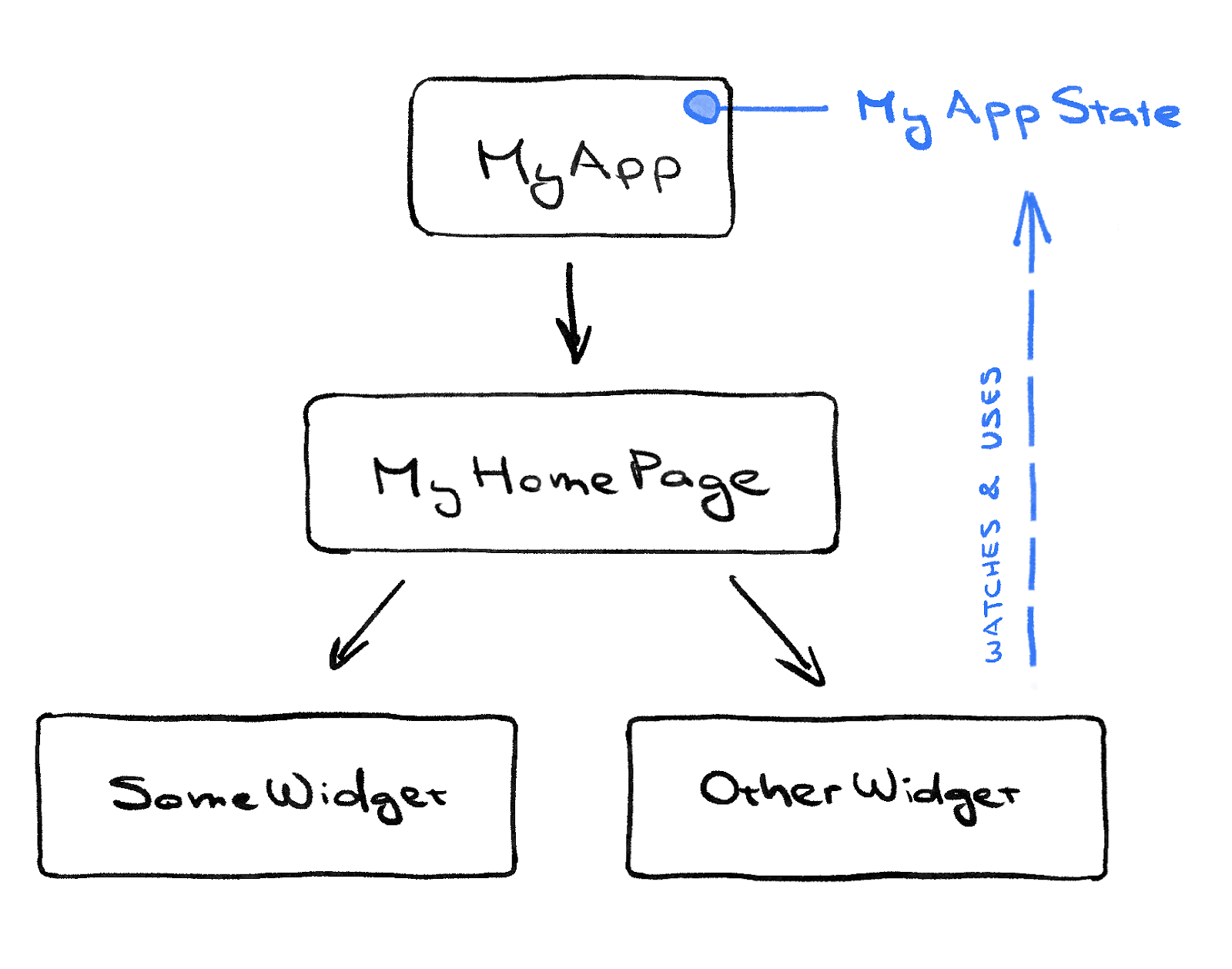 가이드에서는 MyAppState에 자잘한 상태들을 추가하는 것을 지양하고 단일 위젯에만 관련있는 상태는 setState를 사용하여 그 안에서 해결하는 것을 추천하고 있습니다. 하긴 맞는 말이네요. 다른 위젯에 알려줄 필요가 없으면 굳이... (라고 생각했는데 쿠로곰님의 코멘트가 있어 첨부합니다.)