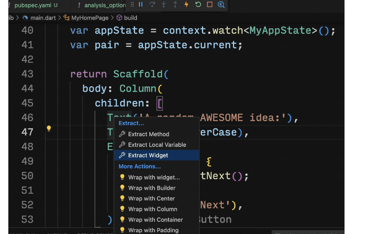 이렇게 Extract Widget 기능을 사용하면 깔끔하게 위젯이 추출된다! 매개변수도 알아서!!!