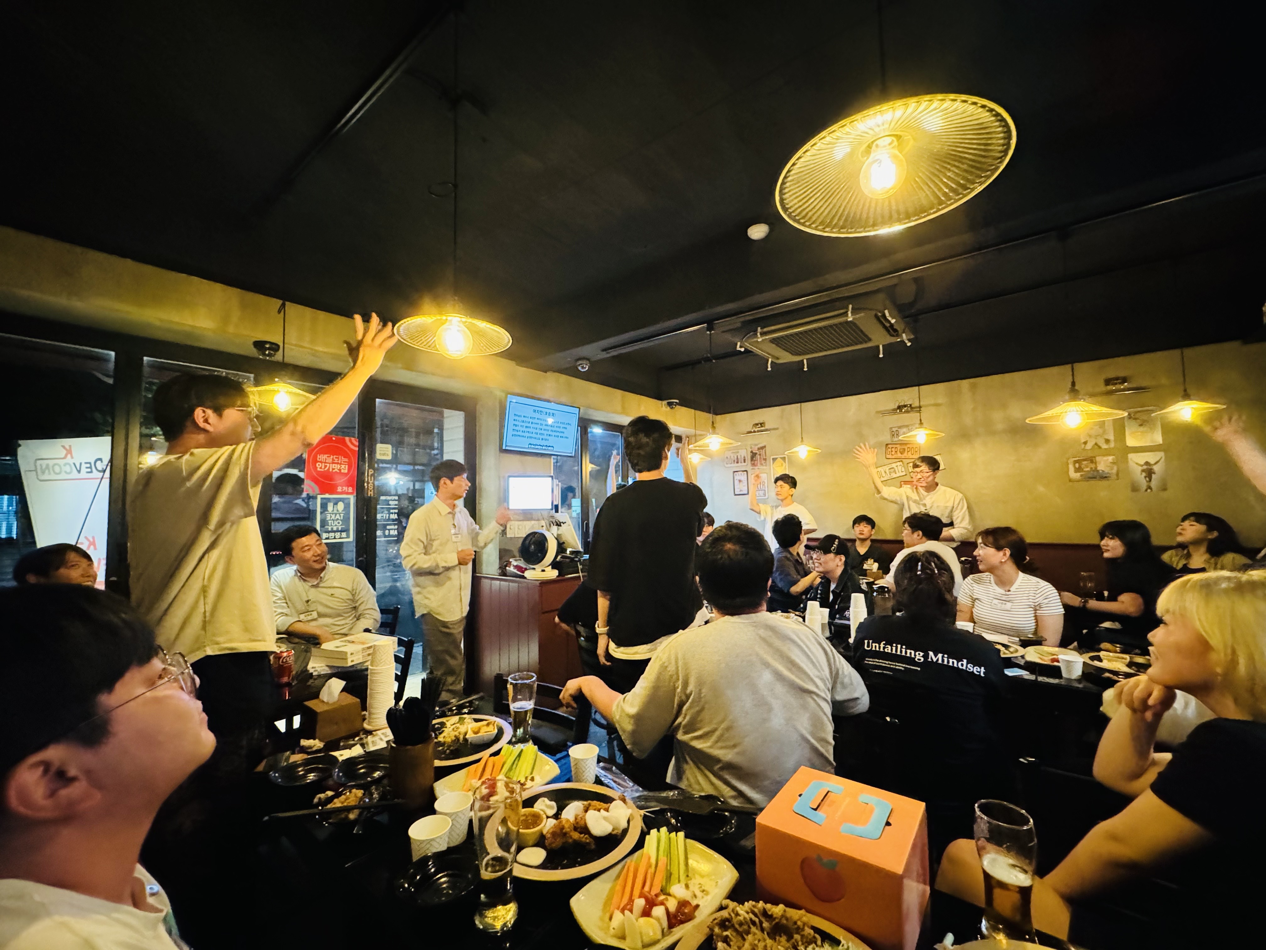 7월에 벙개같이 찾아온 치맥모임이었지만, 모두가 맛나는 음식과 맥주한잔 하면서 예비 직장인, 직장인, 신입부터 리드까지의 다양한 계층의 분들이 서로 고충과 성장에 대한 어필을 할 수 있는 시간이어서 매우 뿌듯했습니다. 다음에도 더 좋은 행사로 찾아뵐 수 있도록 노력하겠습니다. K-DEVCON은 항상 열려있으니 오픈톡, 슬랙, 연사, 기업 후원 등에도 많은 관심 부탁드립니다. 감사합니다.