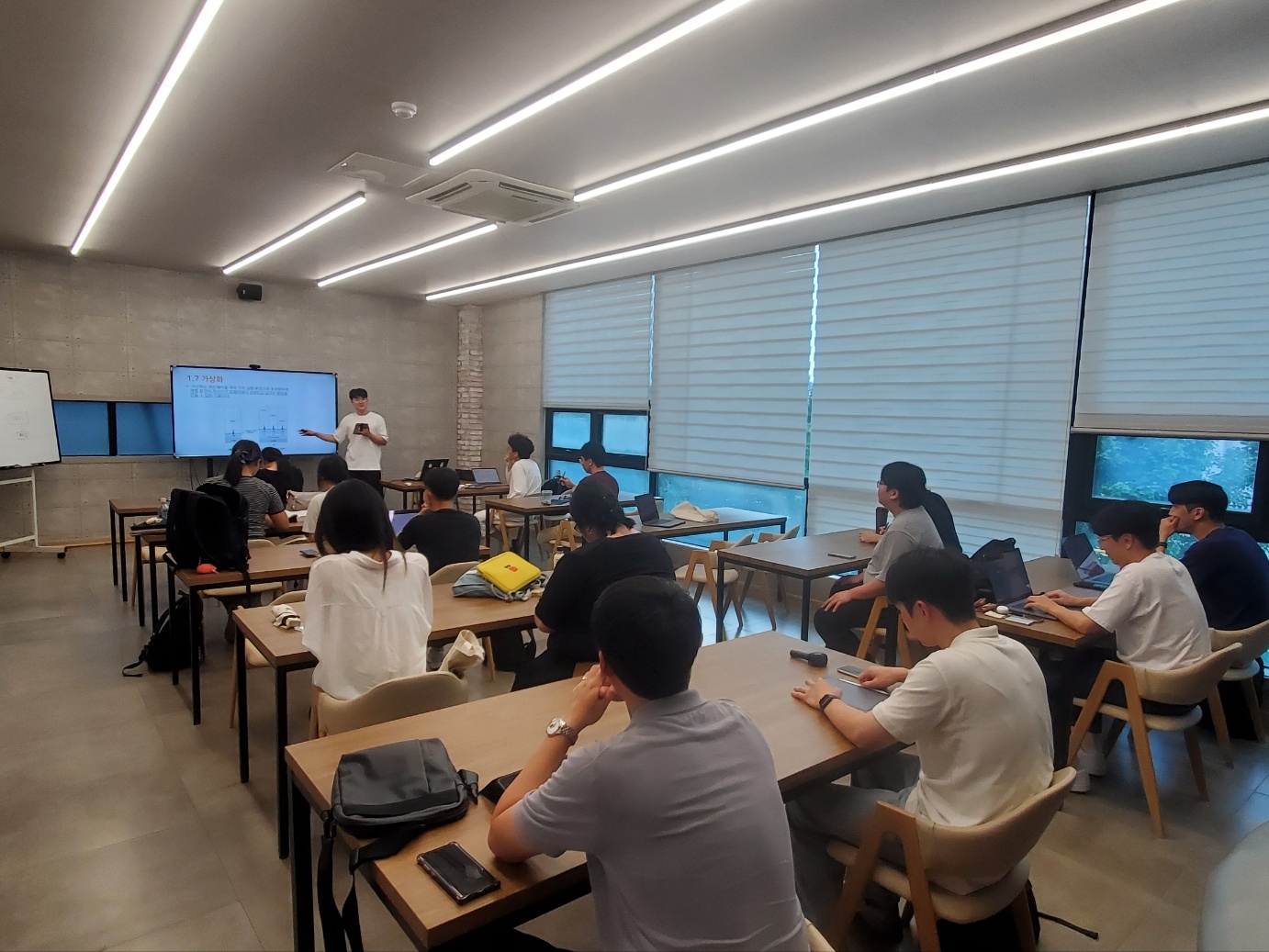이번 스터디는 대전 시청 근처의 스터디 라운지 공간에서 모였습니다. 스터디 및 각종 세미나 등을 할 수 있는 공간이었는데, 와인도 시음할 수 있는 레스토랑 까페 + 라운지 + 스터디룸을 합친 공간 느낌이었습니다. (2층은 라운지, 3층은 룸으로 구성되어 있음)