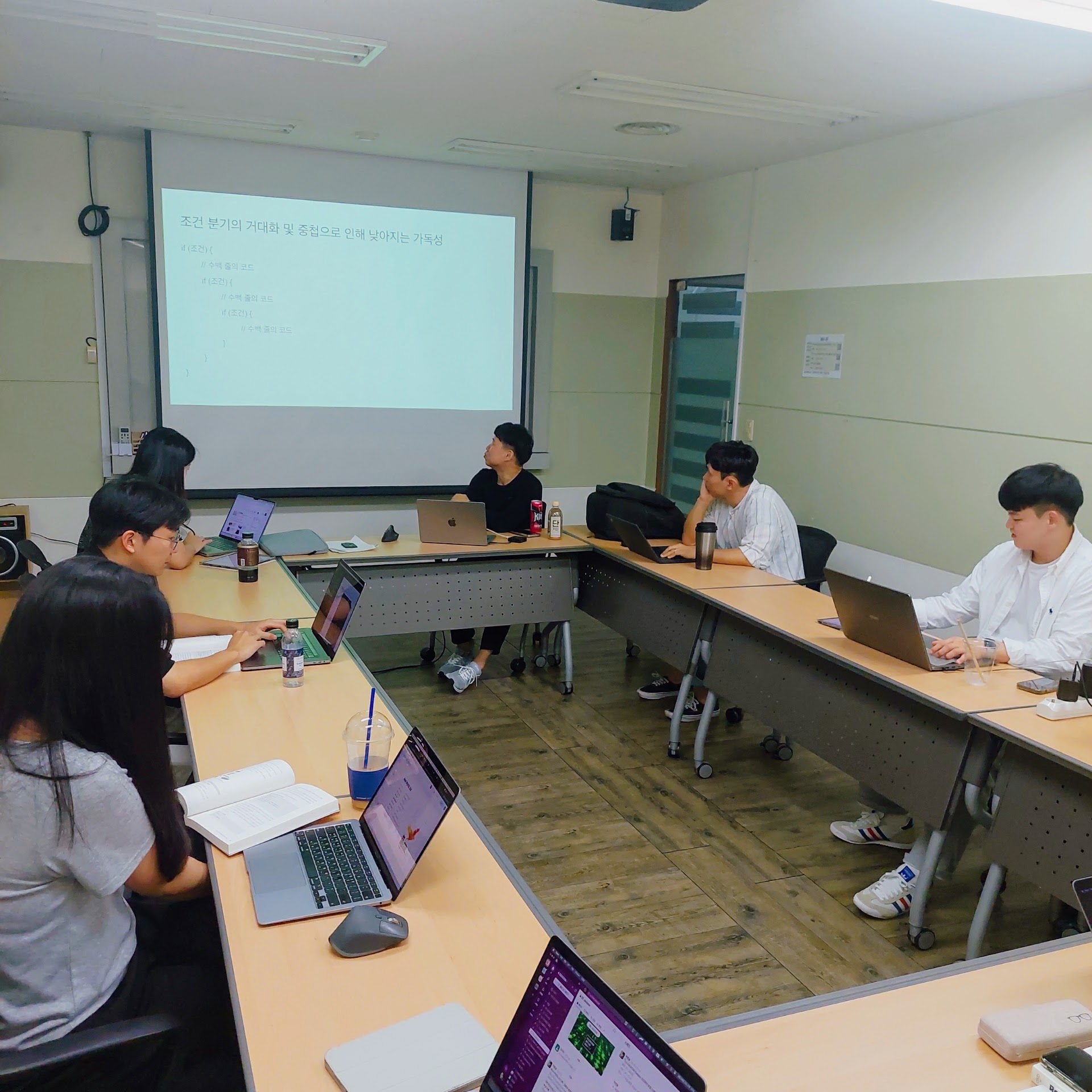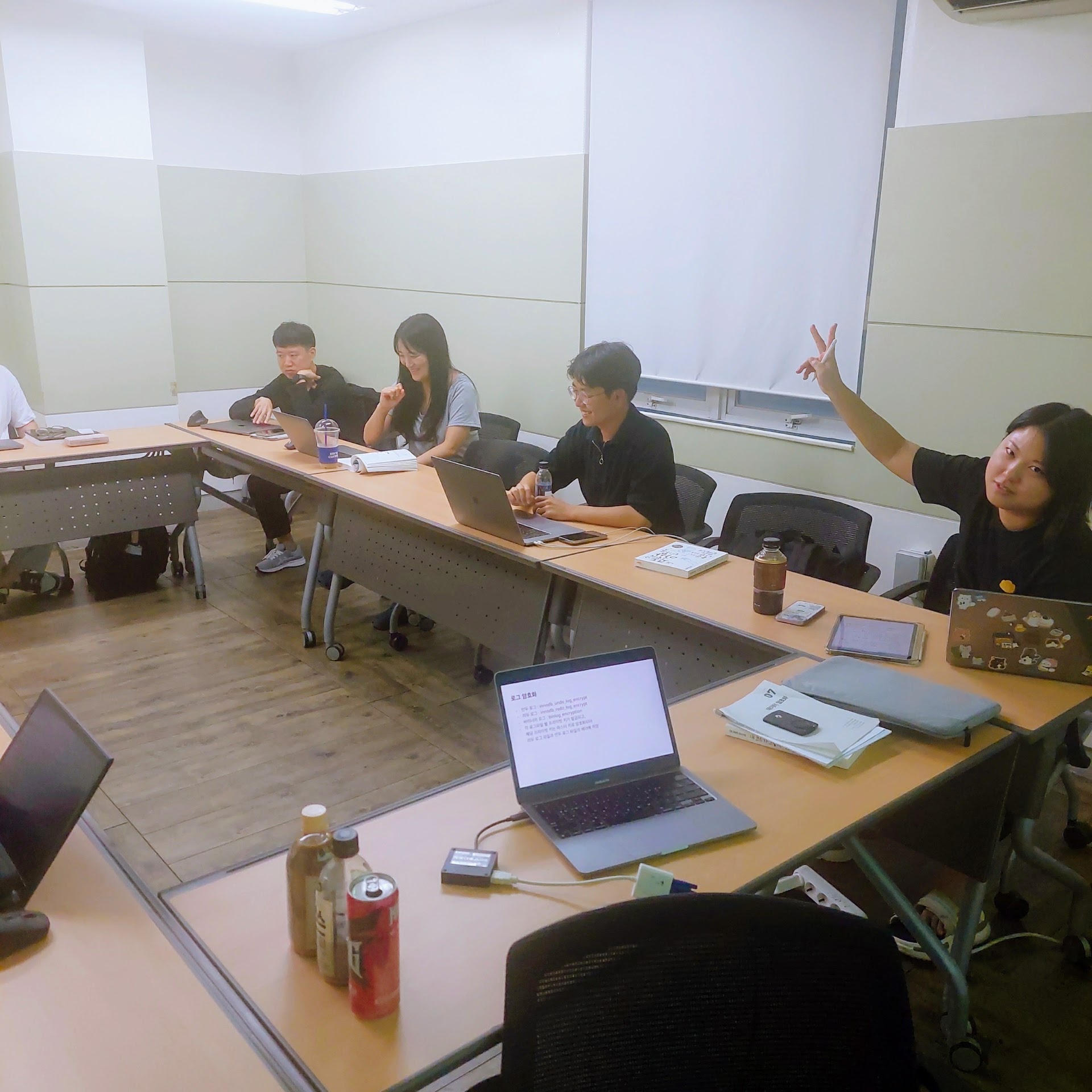 저희는 단순히 진도를 나가는데 목적을 두는 것이 아니라 해당 주제에 대해 서로 공부해 온 것을 기반으로 이야기 하면서 스터디를 진행하고 있습니다. 모르는 부분은 질문하고, 자기가 알던 내용과 다르면 얼마든지 의견을 제시해도 좋습니다. 같이 더 좋은 것을 얻어가기 위해 함께 노력하고 있습니다.