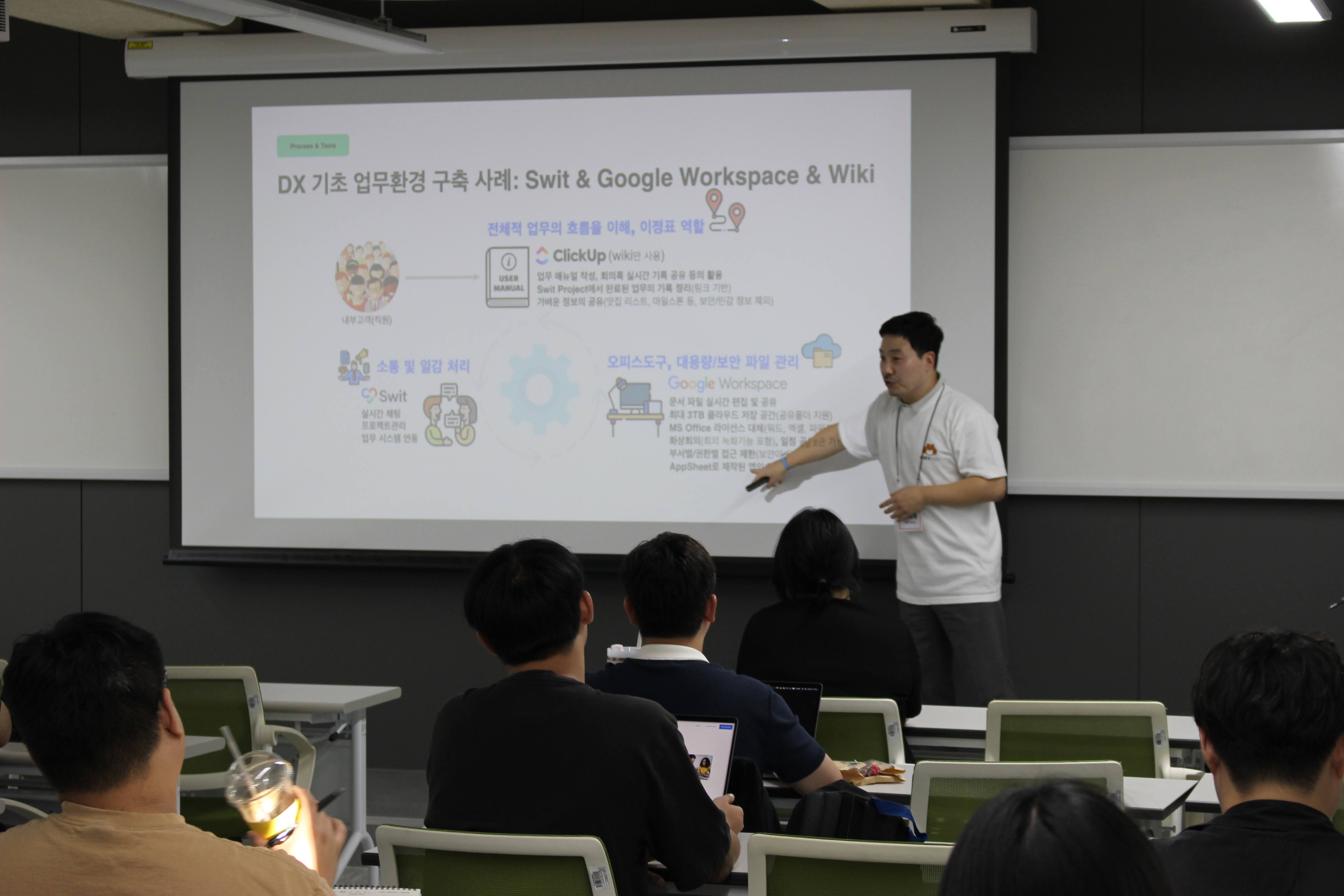 디지털 전환에 대한 간략한 정리, AppSheet, LookerStudio 등을 활용한 No-code툴의 활용 방법, 현업에서 오프라인 데이터를 수집하는 방법 등 소비재 사업을 주로 담당하는 기업에서 실제 사례 기반의 기획/개발 산출물을 소개해 주셨습니다.